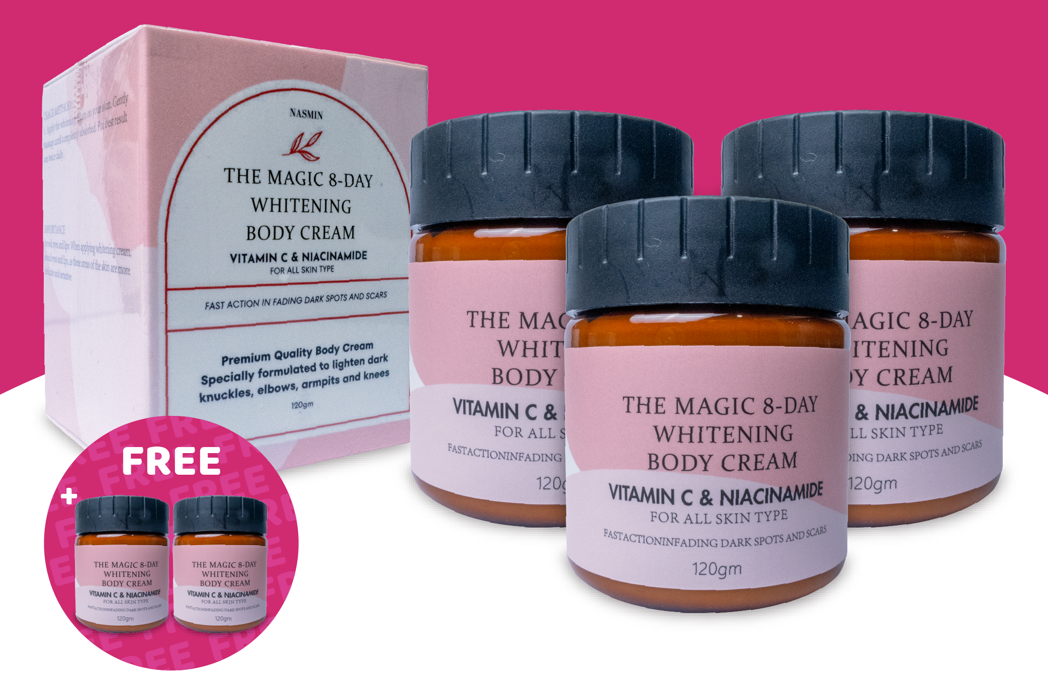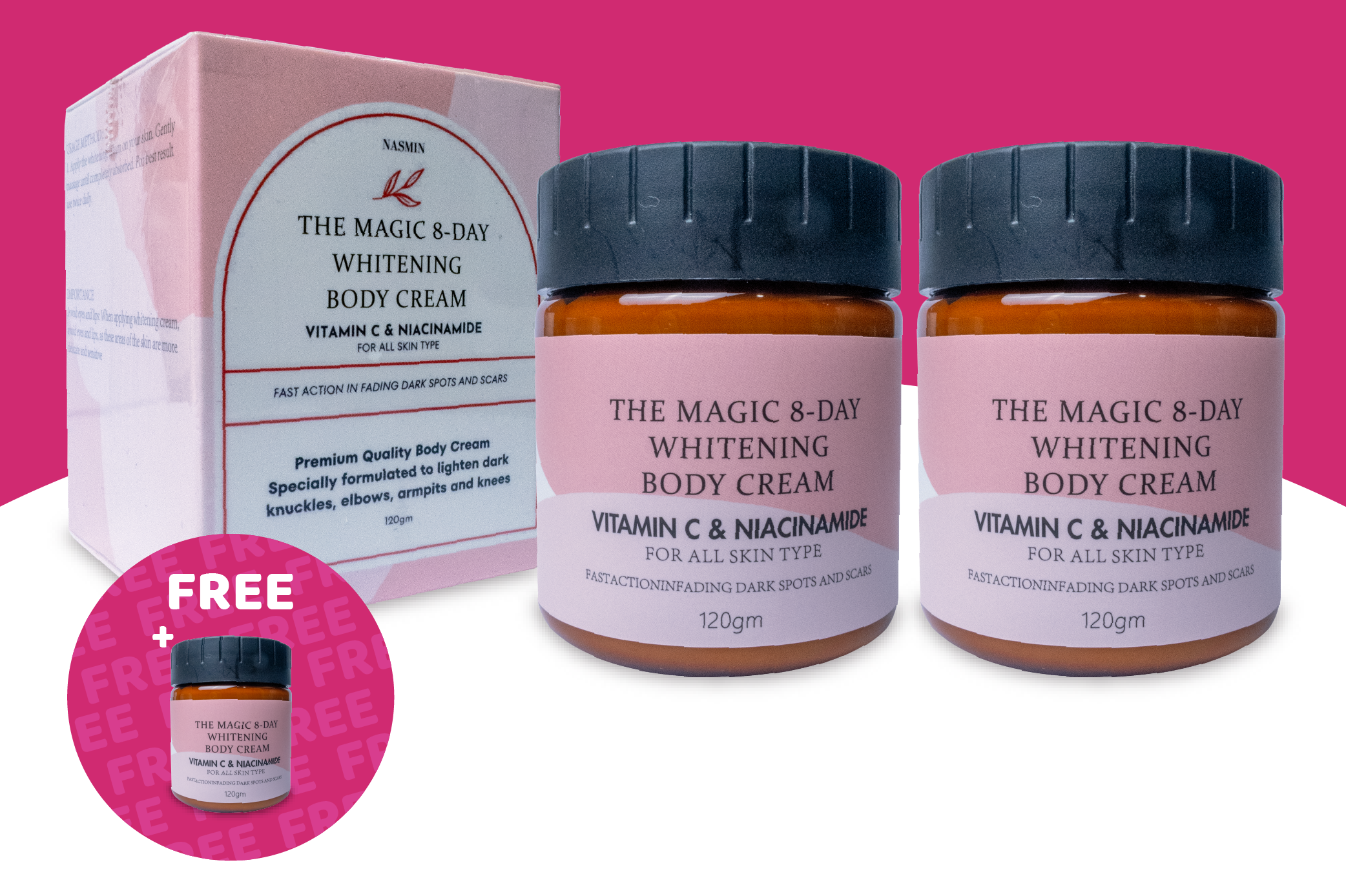 Berdasarkan rekod pengguna Nasmin Magic 8-Day Whitening Body Cream, kesan boleh di lihat seawal 3 hari sekiranya di secara konsisten.